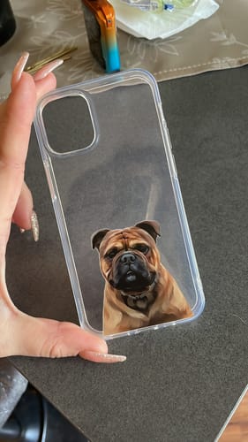 Ja, wir können den Namen deines Haustiers oberhalb des Bildes hinzufügen, um deine Hülle noch persönlicher zu machen.